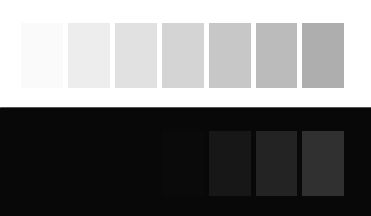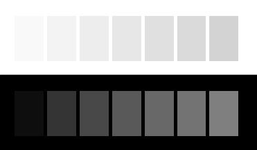 Man muss hier darauf achten, dass die Helligkeitssprünge zwischen den Balken gleichmäßig exponentiell gemäß der Potenzfunktion erscheinen. Bei unserem "schlechten" Beispiel von oben wären z.B. die letzten 2 hellgrauen Balken kaum voneinander zu unterscheiden. Auch die dunkelgrauen Balken sollten klare Helligkeitsunterschiede aufweisen und nicht vom Schwarz "verschluckt" werden. Diese hätte nämlich einen massiven Detailverlust in dunklen Bereichen zur Folge.