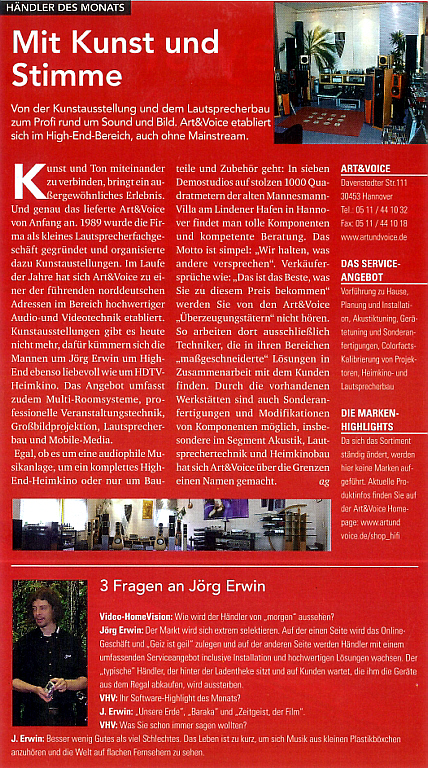 Art&Voice erhält Auszeichnung "Händler des Monats" in der Fachzeitschrift "Video"